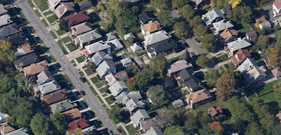 In American cities, by contrast, the common historical pattern has been both wide blocks and streets. In order to respond to high demand for housing, therefore, the solution has been to slice lots thinner and thinner. Although this does increase the number of lots per block, it adversely affects their utility, leaving the builder to construct a very long and narrow house. An example is from an older neighborhood in Buffalo, NY -- a neighborhood more than a century older than the one above -- with lots of 30' x 175':