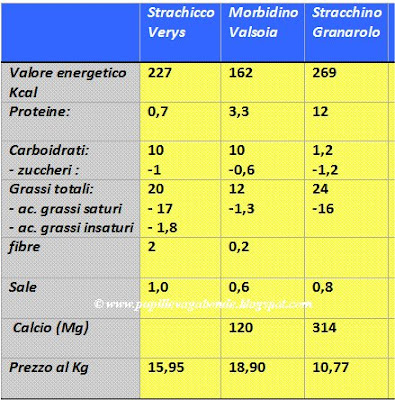 Tabella 2 Confronto Strachicco Morbidino e Stracchino