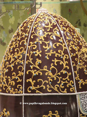 Sono tra le uova più decorate che io abbia visto quest'anno, da una parte c'è il facile riferimento alle decorazione delle Uova di Fabergè dall'altro come mostra il video su Facebook ai colori delle piume dei volatili.