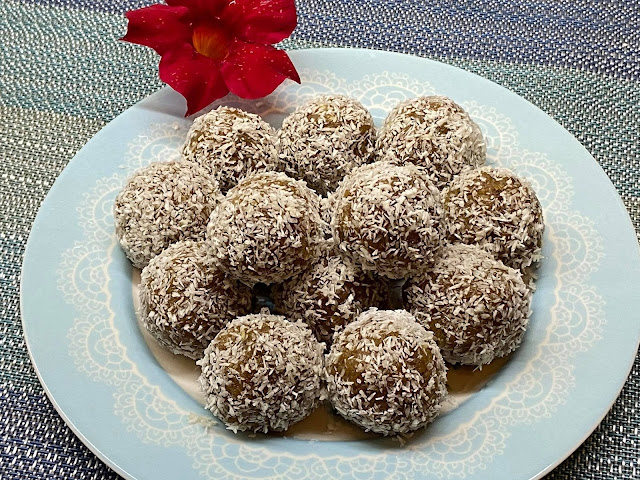 Fazer pequenas bolinhas e passar em coco ralado.