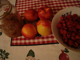 Dupa ce clocoteste un minut, se amesteca cu piersicile.Eu am preferat sa folosesc piersici proaspete, adica nectarine.