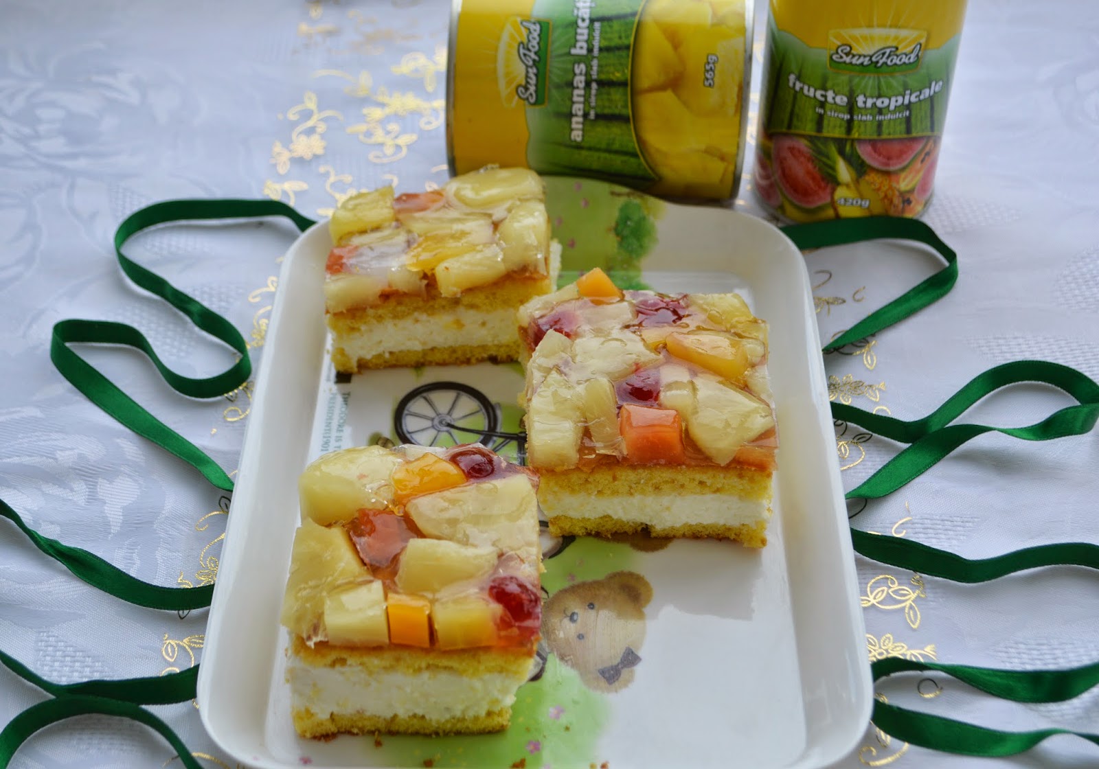 Siropul din conserva de ananas si siropul din conserva cu fructe tropicale l-am folosit la Tort Jelee, adaugand 150ml de apa, deoarece a fost doar 350ml de sirop.