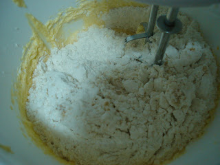 Freci spuma grasimea cu zaharul, adaugi oul intreg, galbenusul, laptele si sarea.
