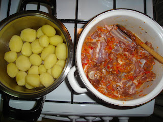 Mi-au ramas niste bucati din carnita de iezisor, coaste, sira spinarii asa ca am facut o tocanita...tot anul trecut, 2009.