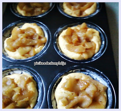 | Megpróbáltam belenyomkodni az almát, de ahogy a tészta nőtt, úgy jött vissza a tetejére az alma. Nem voltam elég drasztikus. |