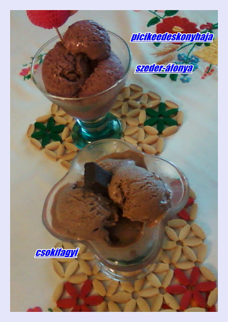 Gondoltam ezeket felhasználva, készíthetnék egy jó igazi csokis fagyit. Azt el kell mondanom, hogy tényleg nagyon csokis fagyinak tartották. Ja és még 1 evőkanál holland kakaóport is.