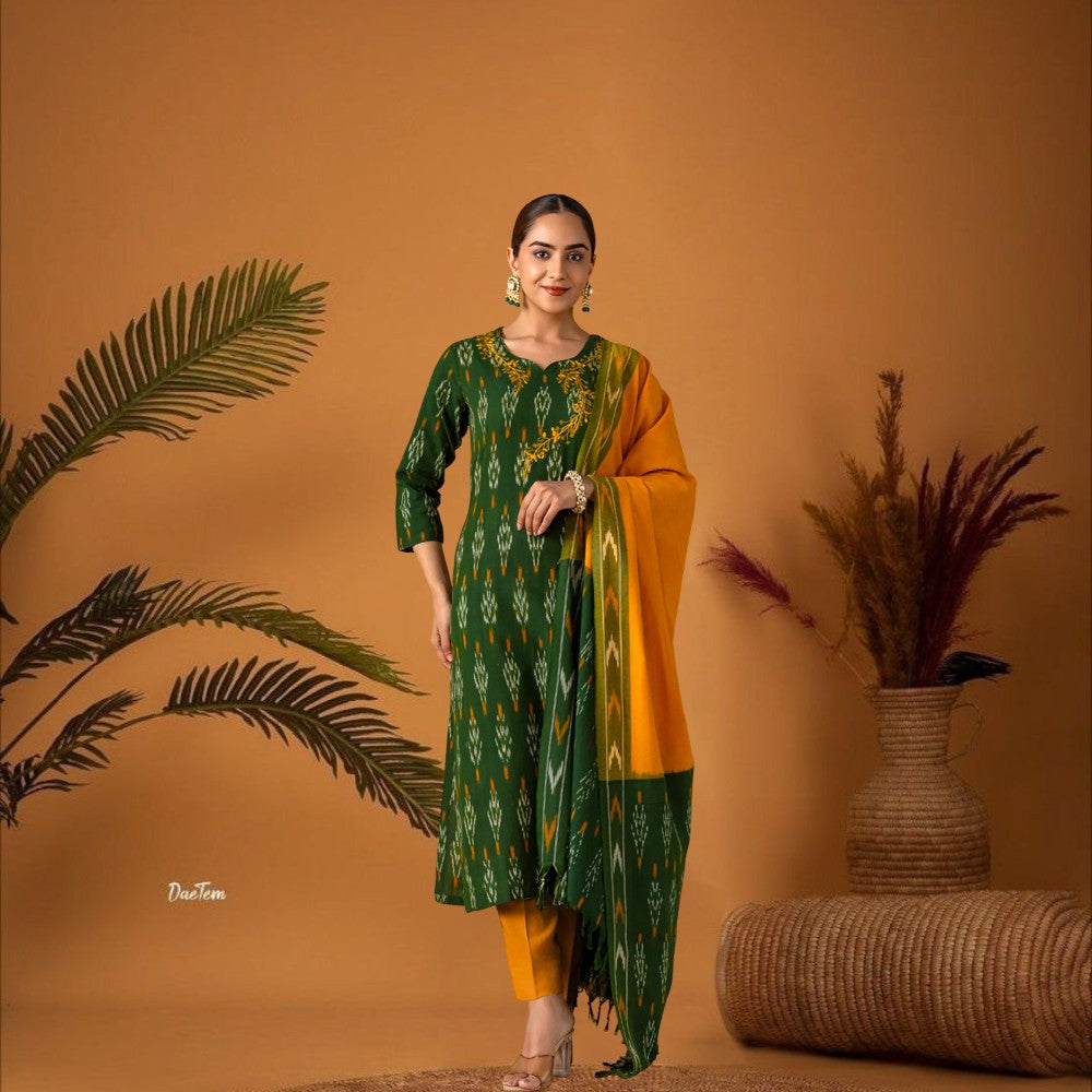 POCHAMPALLY IKAT COTTON ANANDA BLUE WITH GREEN COLOR DUPATTA-C3- Regular price