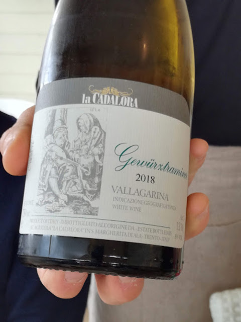 Un piatto sontuoso chiama un vino sontuoso. Non amo il Gewürztraminer ma quando ci vuole..e questo IGT Vallagarina 2018 dell'azienda trentina La Cadalora, pur presentando tutte le intense note varietali del vitigno aromatico, è bilanciato da una bella vena acida che lo rende equilibrato e piacevole.