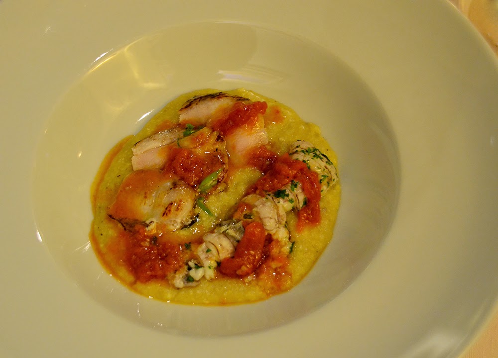 Decisa dunque la linea da seguire, abbiamo elaborato un menu con alcune proposte definite (le mie) a cui ne sarebbero state aggiunte altre, realizzate secondo il volere del mare e la creatività di Maurizio e in base ai miei scarti di lavorazione, alla fine questo è stato il risultato effettivo: