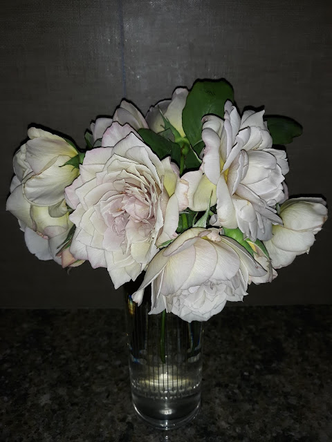 Grey Pearl is a rose you have to exercise control over. Allow it to flower all it wants and it will grow backwards until it flowers itself to death. Once you've "encouraged" it to produce the plant you need, you can allow it some blooms. These are ones I missed pinching off, so the two plants pushed them out in the windy heat.