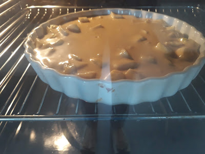 Az így összeállított tésztát illik pihentetni hűtőben. Ezen kívül vaksütést is ajánlatos alkalmazni, de én nem szoktam, egyszerűen kipukkasztom a hólyagokat és ezután öntöm bele a masszát az elősütött tésztába.