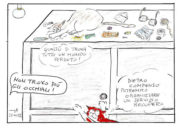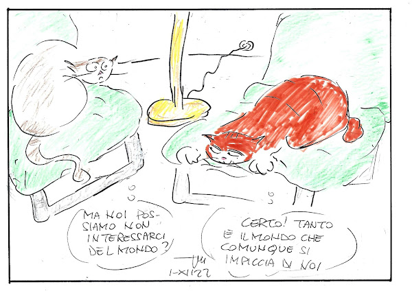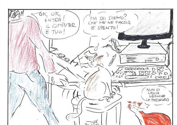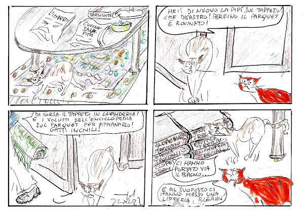 riflessioni, aspirazioni e frustrazioni di Rasputin, gatto rosso a coda corta,rigidamente "indoor", recluso in un appartamento del VII piano senza balconi,costretto ad osservare e cercare di annusare il mondo dietro i vetri, spettatore perplesso davanti ai comportamenti incoerenti dei suoi umani, quali non voler fare entrare i topi e non voler far uscire i gatti.