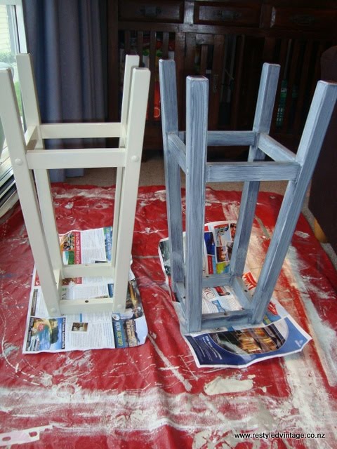 By that stage I had already painted the insides in a duck egg blue/green (Dulux Punakaiki). I always paint the insides of cupboards, as I feel that even though you can't necessarily see them, it gives a nice clean fresh feel to a piece, which is important to me, since they are second hand and mostly very well-used pieces. So I had thought that maybe I'd do the inside duck egg just for a wee surprise and then paint the outside cream (my cream of choice, Dulux Cape Colville). But that paintbrush with the duck egg on it just didn't want to jump out of my hand and before I knew it, I had this:
