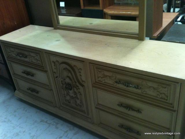 Yesterday I showed you the mirror that was originally attached to this piece, to make it a duchess/dressing table. I decided to split these two pieces up and give them new life as a wall mirror and a sideboard/console.