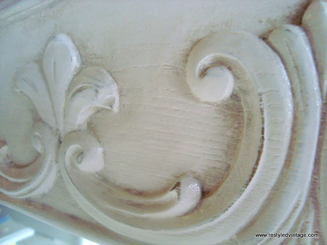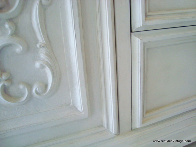 This piece has the most beautiful detail on the door and top drawers.