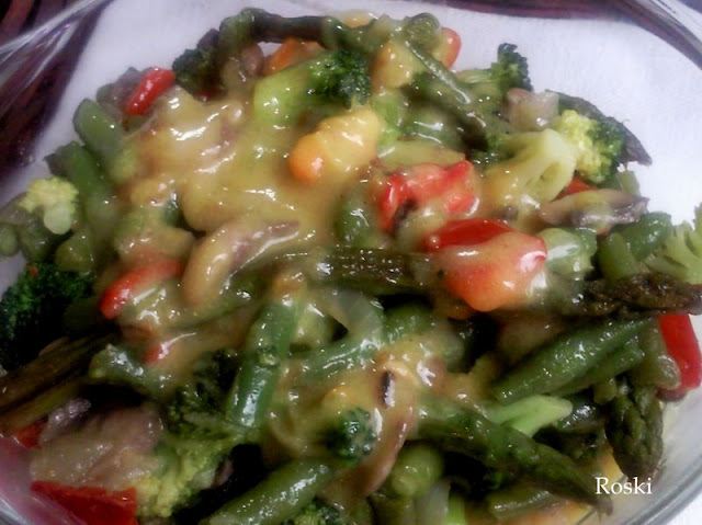 Colocamos en una fuente o en un plato individual la ensalada variada.