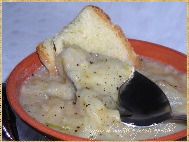 Volendo si può gratinare la zuppa in forno per qualche minuto, in quel caso si metterà la zuppa in una pirofila o in zuppiere singole.
