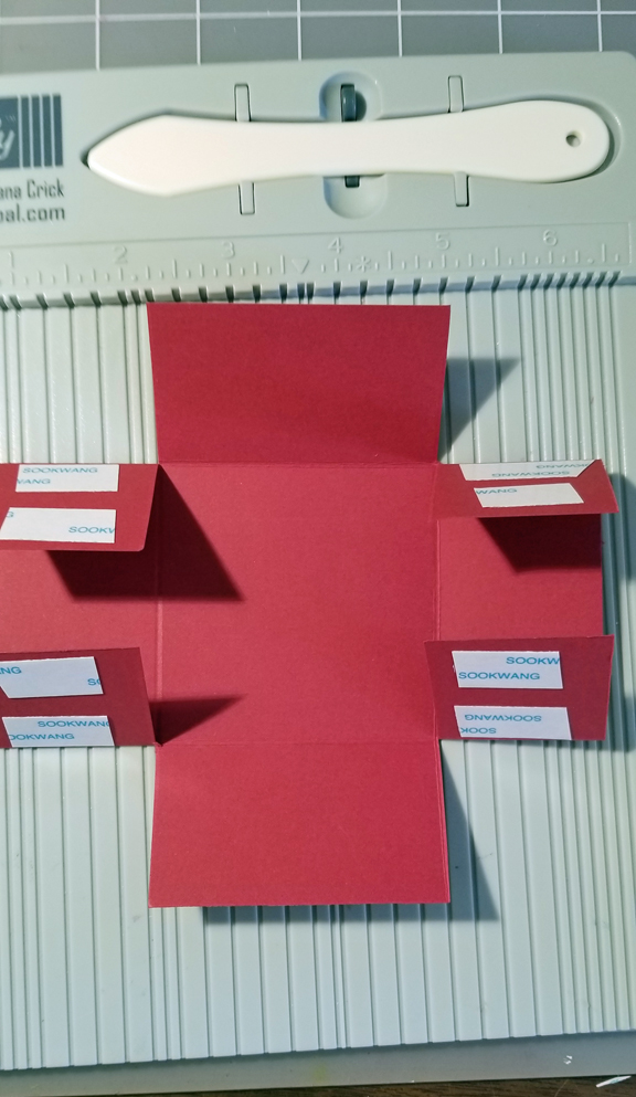 Fold and burnish the score lines and cut the tabs as shown in the photo below.