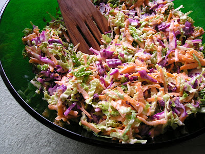 Put the mayonnaise in a small bowl, and mix in the lime juice a little at a time. Grind the salt and celery seed together, and mix them into the mayonnaise. Toss the cole-slaw in the dressing. Return the coleslaw to the fridge for at least 20 minutes to let the flavours meld.