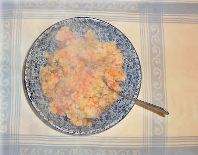 I usually serve it forthwith, but the friend from whom I received this recipe used to mash it very finely, beat in an egg, and put it in a buttered casserole dish. (She did peel the potatoes.) It was then reheated in the oven, until lightly browned around the edges.