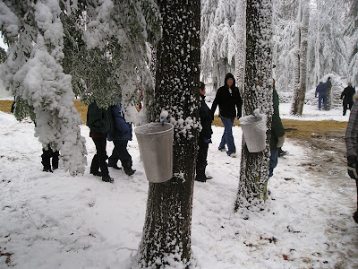 There were a few trees being tapped with buckets, just to show how it used to be done.