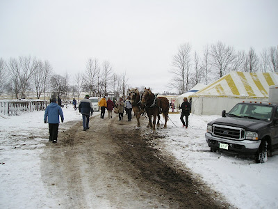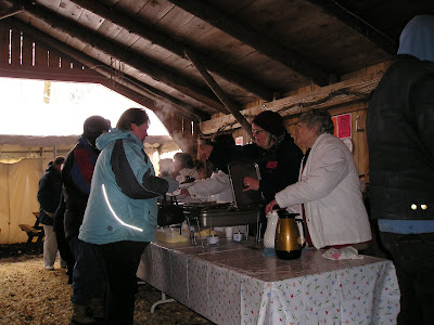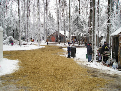 Holstein is the only tiny village I know of with a large municipal parking lot. They need it, and make good use of it. We parked and boarded one of the several standard maple syrup festival hay wagons for the trip to the bush. However, they also had a school bus making the circuit for those who couldn't hack the wind - and the wind whipping across the open fields was pretty brutal, even though it wasn't - in theory - that cold.