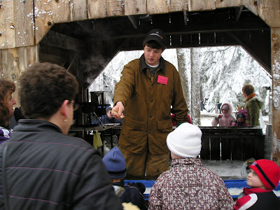 Much of that happens in the "Silver Bullet" behind this man, who was on hand to explain how it all works and answer questions about the maple syrup making process. There was no sap flowing at the time as it was too cold out. In spite of the process now being very mechanized, it has to be supervised at all times when the sap is flowing. Working hours during sap season are therefore long and variable, and very weather dependant.