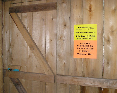 And damn, but yes, that was some mighty fine sausage. The smoky cooking technique made up for the fact that it was a tad over-cooked (it was actually quite lean) with a rich, bacon-y flavour. We didn't buy any sausage on the spot, but I wanted to record the source for, um, posterity.