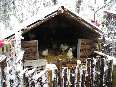 The woodlot was spread with hay to keep it from becoming a mucky mess, and it was lovely to walk around in, being so sheltered. In spite of the snow, we were perfectly warm.