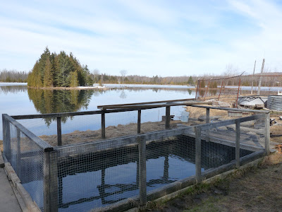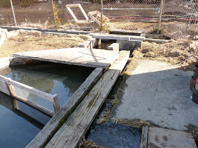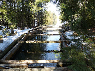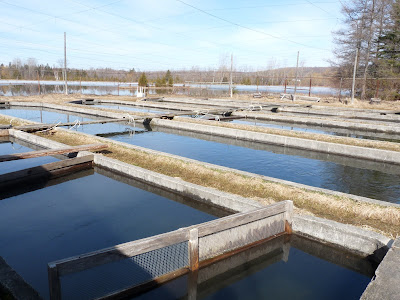 Some of the water continues to flow out to the small lake that the hatchery is on, but much of it is diverted through the hatchery.