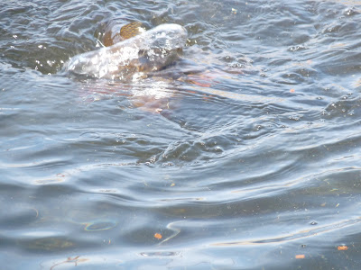The reflections on the water made it hard to get good pictures of the fish outside, but here's a couple coming up for feed.