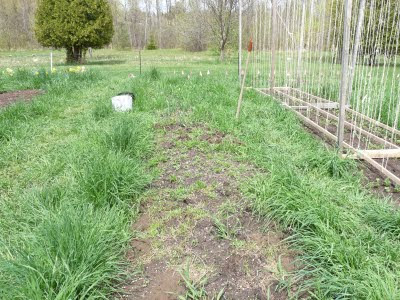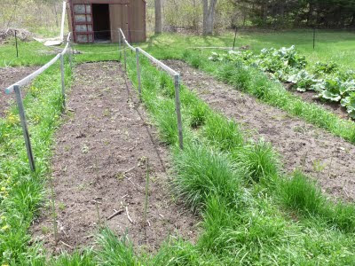 On the other hand, progress is being made. This bed is ready to go and contains snow-peas. We have learned some things since last year, and made some changes.