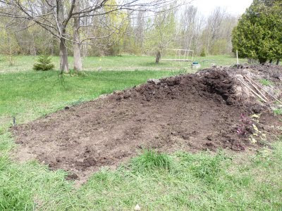So far we have just one bed dug, which has also been trellised and planted with peas. Three more to go, ugh. Triple ugh. Not looking forward to it. I'm also not expecting a great crop from these beds this year, but I am hopefull that after a couple seasons of working on them they will actually be very good, rich moist beds.