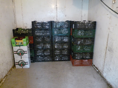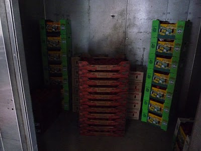 The other cooler is also a second hand one, from a butcher shop this time. This one is being used as a cooler. Right now, it's low tide in the warehouse, and it contains only bags of beets and a few odds and ends. Our goal for the day is to fill this cooler in preparation for the market at Keady tomorrow.