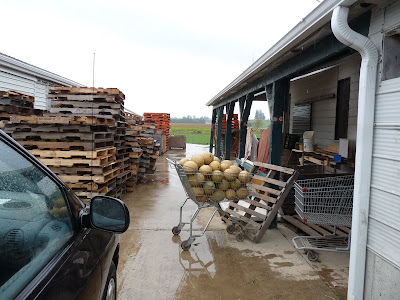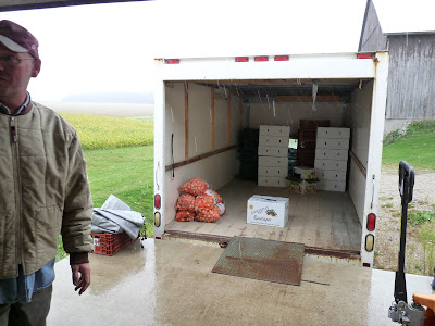I arrived at Robert's 24 acre farm just south of Wingham at 10:30 on Monday morning, as he prepared to go around and gather the produce he would need to take to Keady the next morning. He had already been on the road for several hours at that point, having just returned from dropping off 500 pounds of rutabagas in St. Clements.