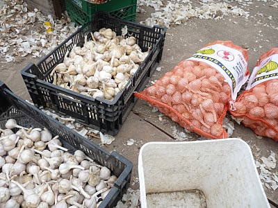 We had found the farming couple cleaning and sorting garlic when we arrived. They were happy to sell it, and when they heard it was to be planted to stop cleaning it too, in exchange for a slightly lower price.