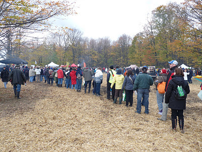 The event itself was held in and about a large maple bush. Some straw had been put down to fight the mud - not enough, as it turned out, but it did help.