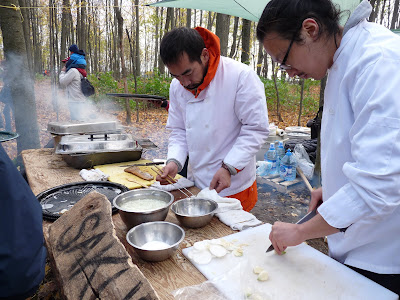 Chefs and their tables filled the paths through the woods, and all around the outsides on three sides too.