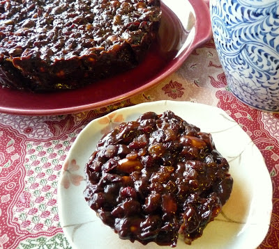 I thought I would try a different kind of fruitcake this year for Christmas, and decided to tackle a panforte. The name is misleading - it means strong bread, in Italian - because this is not bread nor cake, but really a kind of baked candy. Staggeringly rich, is what I'm saying. So cut it in very, very small pieces.
