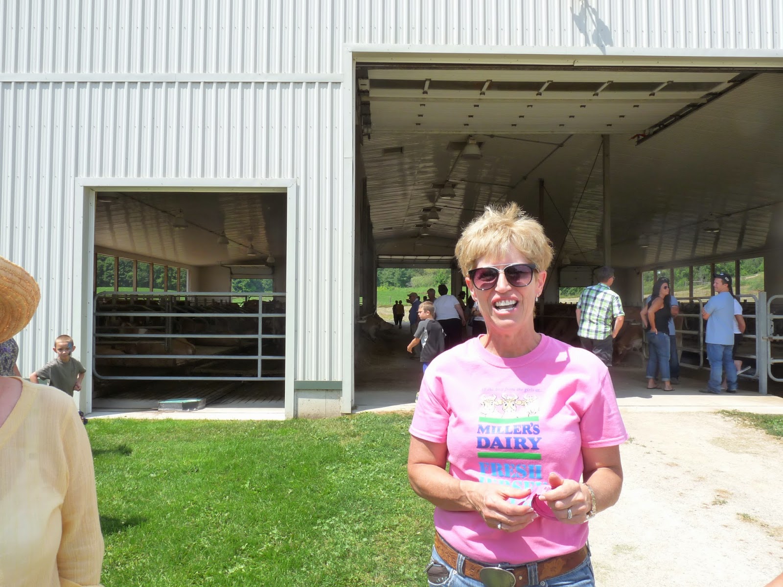 As we exited the barn, we had a chance to talk to Marie Miller, one of the owners of the farm. She told us that while Miller's Dairy products are not (yet?) sold in Toronto, they are available in about 95 stores at this point. They have been interested in keeping their market local. I know the milk is carried by Foodland stores in my area (and my local Valu-mart has it, but I suspect they are a bit of an anomaly.) Richard Millsap had earlier told us that that Miller's Dairy milk is available in Kincardine, Hanover, Meaford, Thornbury, and Owen Sound, and presumably a number of other places in that general range.