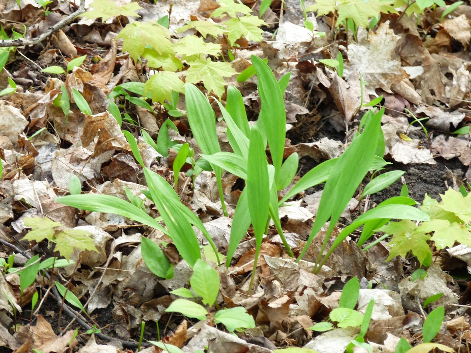 A walk in the woods showed that the wild leeks (ramps) we planted a couple years back are established and doing well, but not really spreading yet. None for us to pick, unfortunately.