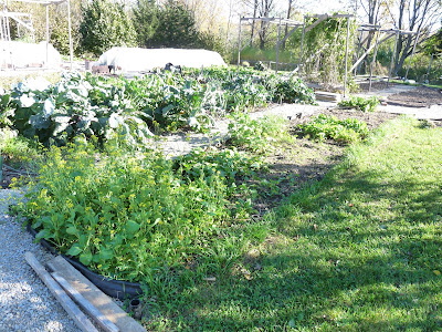 I can tell you the stuff that is going to seed at the end is the rapini. We have the 40 day variety (Quarentina) and if you don't pick it when it is ready, too bad for you. I have left it for the bees, who are loving it. We might get enough seed to replace what we planted, if the weather holds nice for long enough (not too likely though).