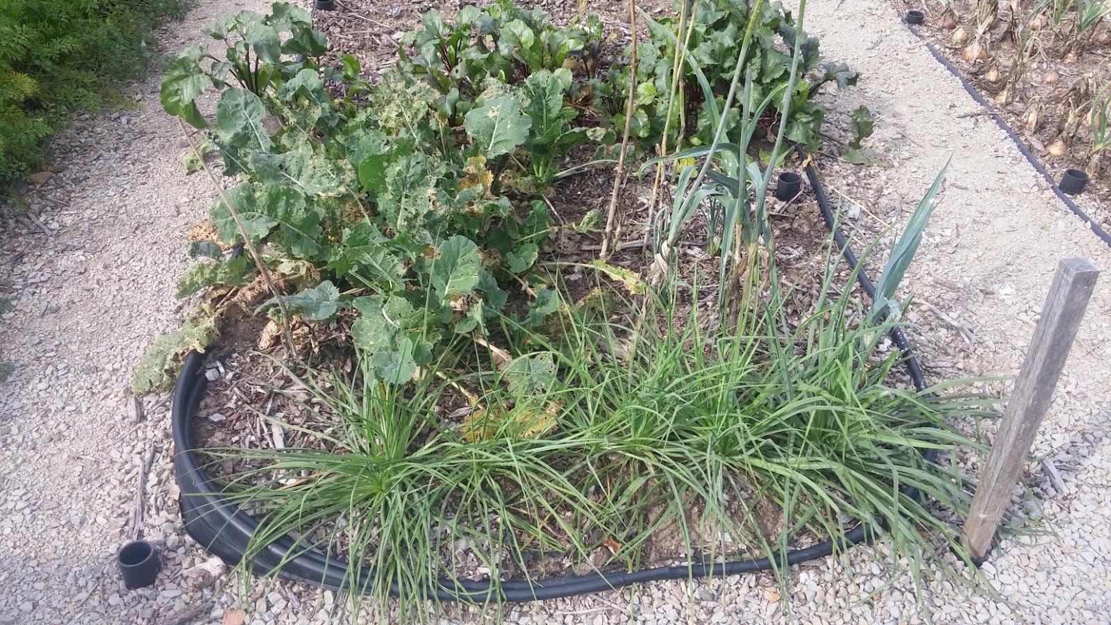 Spring planted beets and rutabaga are in the back. They were very spotty in germinating and the rutabaga have been very slow to grow. We have been eating the beets in fits and starts all summer and I am amazed that they are still in an edible condition. The one upside to a cool summer, maybe.