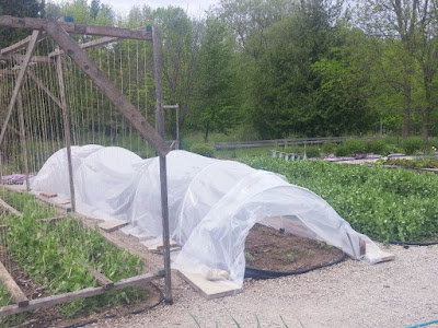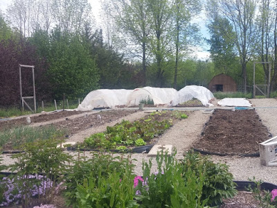 What a strange end to May! The weather has gone from snow, to August heat-wave temperatures, back down to risk of frost in a little less than three weeks. However, we have taken advantage of the heatwave to get a lot of planting done, and now we have many of the more tender plants covered to get them through this current chilly period.