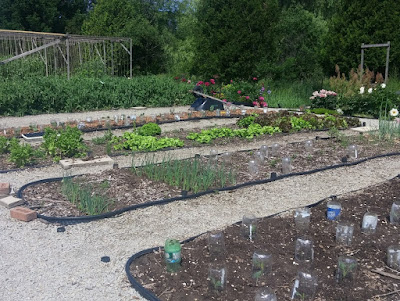 All those beds are now planted, although the cabbages are about the size of dimes, so they don't show up from here. They may not show up at all; the snails are at them. I expect to have to do some re-planting.