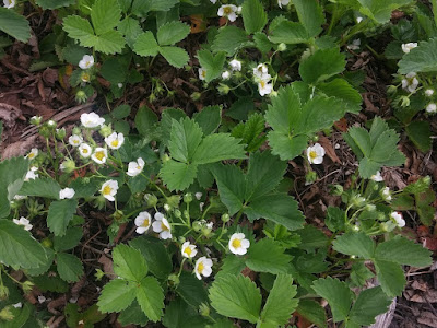 Holy crow! Look at all those strawberry blossoms. We still have an entire fridge freezer full of last years strawberries. Better get cracking on them, because it looks like another bumper year for strawberries. Haskaps bloomed last week, and tiny green berries are starting to form, so I'll have to think of something to do with them, too. A couple of the blueberry bushes died, but the rest are flowering fairly profusely so with luck there will be a decent quantity of blueberries too.