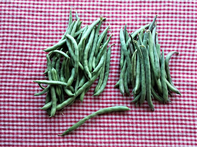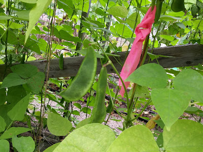 The Blue Lake x Cherokee Trail of Tears cross (not shown) continues to be surprisingly variable, and I'm having a hard time pinning down which plants to use. However, the Anellino Yellow x Cherokee Trail of Tears cross (on the right) is doing really well. It's a late starter though; I keep thinking we should drop it, but then it goes, and goes, and goes, and the beans are so tasty and tender, and it's back on the list for next year.