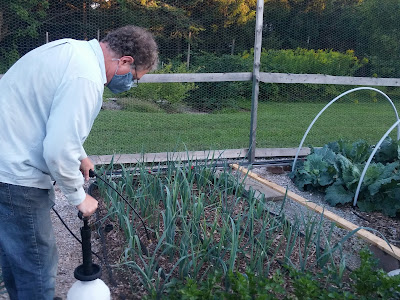 I don't know how there are all these photos of Mr. Ferdzy applying it by himself. Mostly he sprays, while I come along behind carrying the bottle and pumping at the same time, or trying to anyway. Bickering ensues. I guess that's why I left the last bit of the bottle to him.