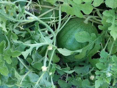 Watermelons, on the other hand, are kind of late, but seem to be doing much better. We'll see when they ripen. They went in a bit late in addition to the coolness of this summer.