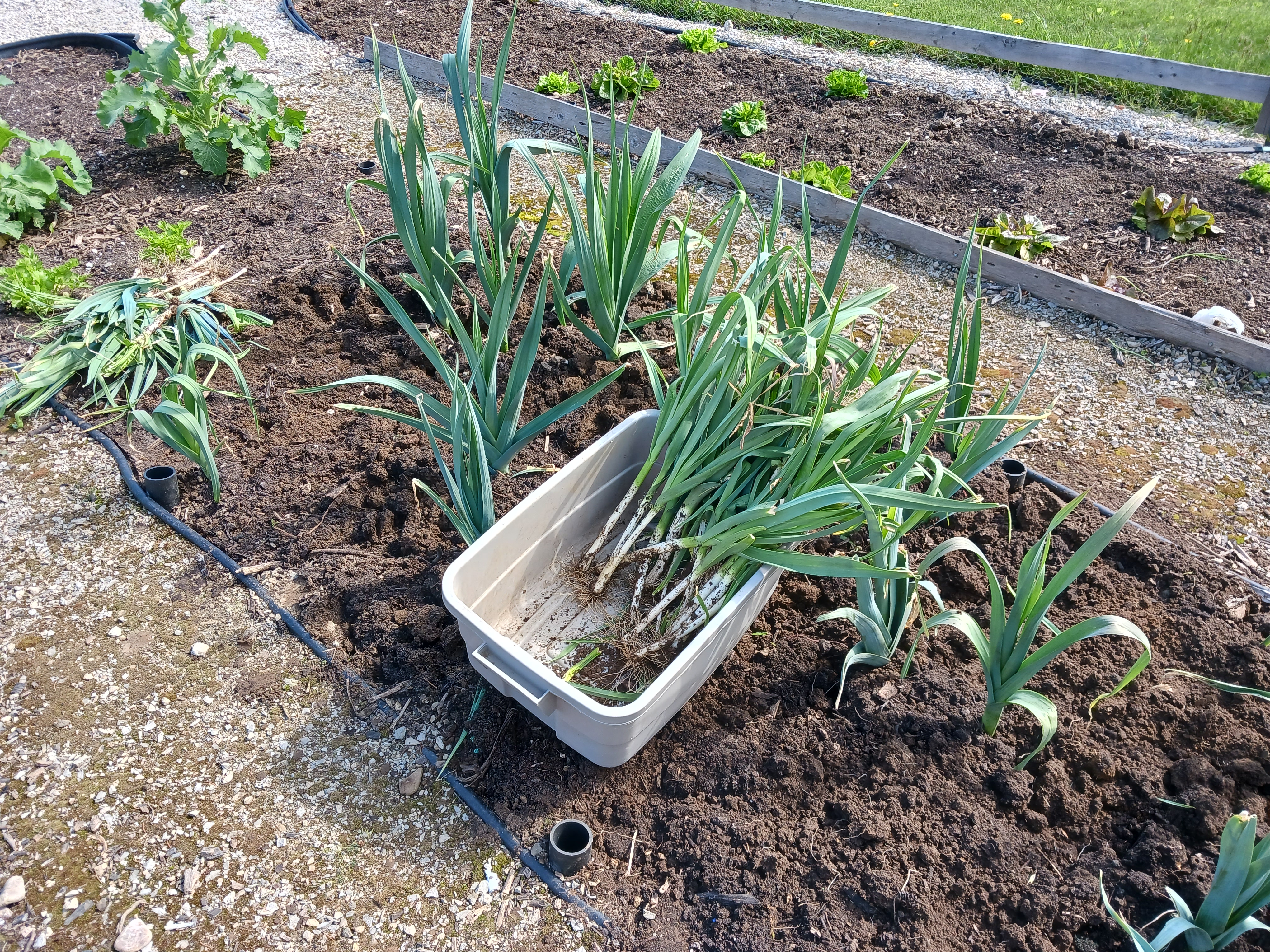 The leek project is not going so well. Here I am removing the least impressive leeks to allow the rest to go to seed. It all looks very promising right now. Things went downhill, though. We collected very little seed because the remaining leeks did not overlap well in their flowering time and at any rate I think I have cut the number going to seed down below their tolerance. I need a bigger space for this project where I can grow about 10 times as many.